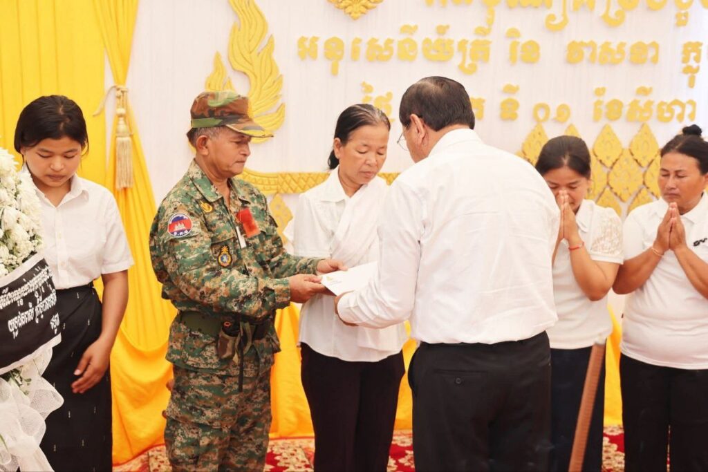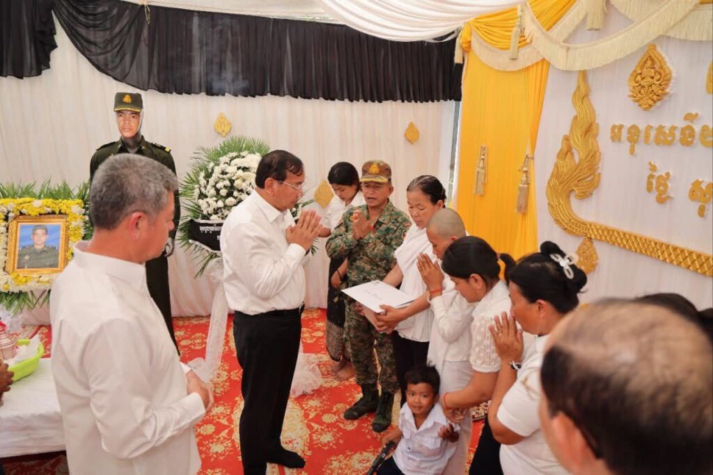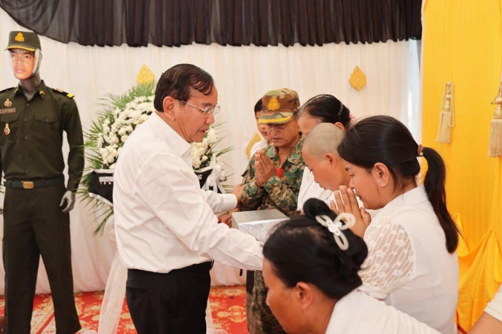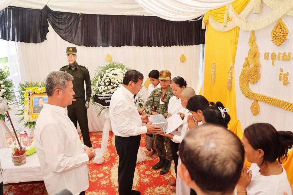 (ខេត្តកណ្តាល)៖ រសៀលថ្ងៃទី៣១ ខែកក្កដា ឆ្នាំ២០២៥ ឯកឧត្ដម នូ សាខន ប្រធានក្រុមប្រឹក្សាខេត្តកណ្ដាល និងឯកឧត្ដម គួច ចំរើន អភិបាល នៃគណៈអភិបាលខេត្តកណ្ដាល បានដឹកនាំប្រតិភូរដ្ឋបាលខេត្តកណ្ដាល កងកំលាំងទាំងបី និងមន្ត្រីរាជការ បានអមដំណើរឯកឧត្ដម ប្រាក់ សុខុន ឧបនាយករដ្ឋមន្ត្រី រដ្ឋមន្ត្រីរដ្ឋមន្ត្រីការបរទេស និងសហប្រតិបត្តិការអន្តរជាតិ អញ្ជើញគោរពវិញ្ញាណក្ខន្ធ និងនាំយកថវិកាសម្តេចបវរធិបតី ហ៊ុន ម៉ាណែត និងលោកជំទាវបណ្ឌិត ពេជ ចន្ទមុន្នី ចំនួន ៨០ ០០០ ០០០៛ ចូលរួមបុណ្យសពព្រឹន្ទបាលទោ រិន វាសនា នាយរងក្រុមទី២ កងអនុសេនាតូចដឹកជញ្ជូន វរសេនាតូច ៣៩៣ កងពលតូចអន្តរាគមន៍លេខ ៩ នៃកងពលធំអន្តរាគមន៍លេខ ៣ ដែលបានពលីជីវិតនៅលើសមរភូមិប្រយុទ្ធទិសមុំបី ខេត្តព្រះវិហារ កាលពីថ្ងៃអាទិត្យទី២៧ ខែកក្កដា ឆ្នាំ២០២៥ ក្នុងជន្មាយុ ២៨ឆ្នាំ នៅភូមិត្រពាំងត្រាច ឃុំដំណាក់អំពិ់ល ស្រុកអង្គស្នួល ខេត្តកណ្តាល។