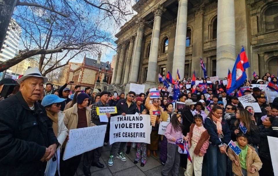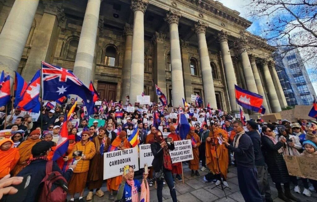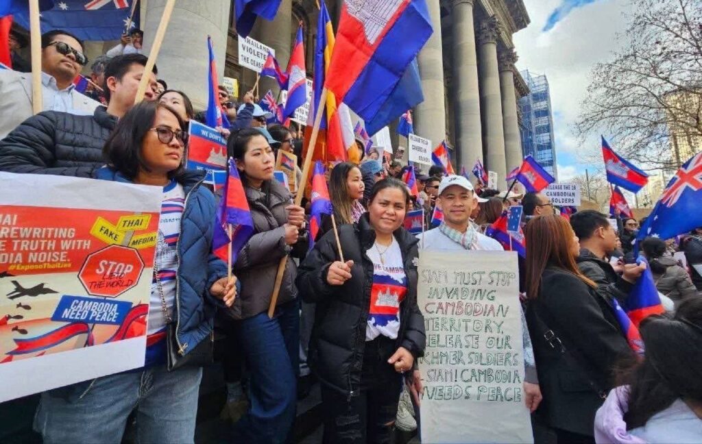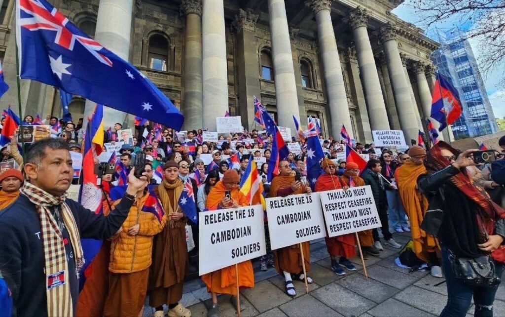នាទីក្រុងអាឌឺឡែត រដ្ឋអូស្រ្តាលីខាងត្បូង ប្រទេសអូស្ត្រាលី នៅថ្ងៃអាទិត្យ ទី១៧ ខែសីហា ឆ្នាំ២០២៥ ប្រជាពលរដ្ឋខ្មែរ និង ព្រះសង្ឃ រួមមានប្រមាណ ជាង១០០០នាក់ បានជួបជុំគ្នាធ្វើបាតុកម្មប្រឆាំងនឹងទង្វើរំលោភកិច្ចព្រមព្រៀងបទឈប់បាញ់របស់ប្រទេសថៃ។ ជាមួយគ្នានេះ ប្រជាពលរដ្ឋកម្ពុជានៅទីក្រុងអាឌឺឡែត បានស្នើសុំឱ្យសហគមន៍អន្តរជាតិ ធ្វើអន្តរាគមន៍ឱ្យប្រទេសថៃគោរពបទឈប់បាញ់ និងដោះលែងកងទ័ពកម្ពុជាដោយឥតលក្ខខណ្ឌ។