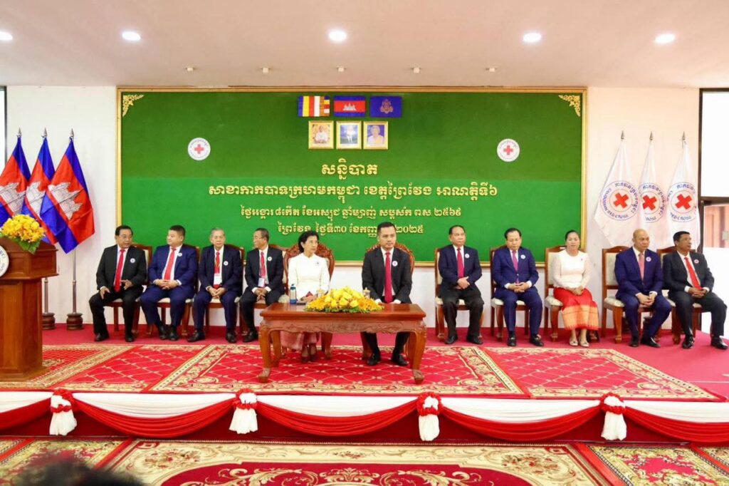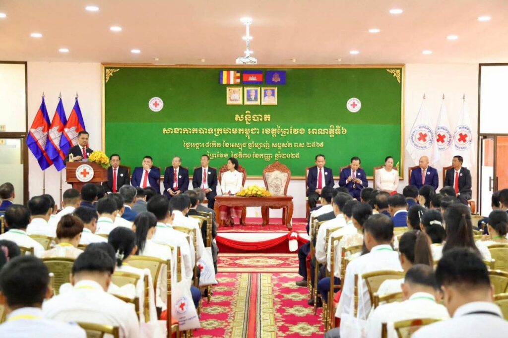 ការលើកឡើងនូវសេចក្ដីផ្តាំផ្ញើប្រកបដោយក្ដីត្រេកអរ របស់សម្តេចកិត្តិព្រឹទ្ធបណ្ឌិត បានធ្វើឡើងក្នុងឱកាស ដែលសាខាកាកបាទក្រហមកម្ពុជាខេត្តព្រៃវែង បានរៀបចំពិធីបិទសន្និបាតសាខាកាកបាទក្រហមកម្ពុជា ខេត្តព្រៃវែង អាណត្តិទី៦ នាព្រឹកថ្ងៃទី៣០ ខែកញ្ញា ឆ្នាំ២០២៥នេះ ក្រោមអធិបតីភាពដ៏ខ្ពង់ខ្ពស់ ឯកឧត្តមអភិសន្តិបណ្ឌិត ស សុខា ឧបនាយករដ្ឋមន្ត្រី រដ្ឋមន្ត្រីក្រសួងមហាផ្ទៃ និងជាប្រធានកិត្តិយសសាខាកាកបាទក្រហមកម្ពុជាខេត្តព្រៃវែង។