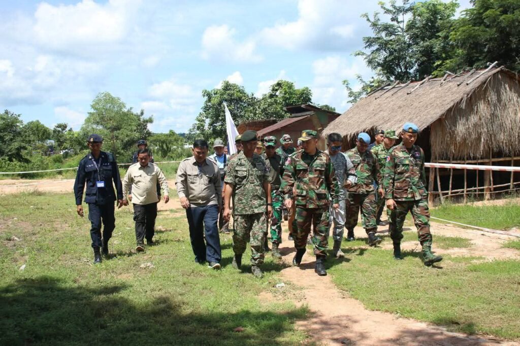 (ខេត្តឧត្តរមានជ័យ)៖ នៅព្រឹកថ្ងៃសៅរ៍ ទី៤ ខែតុលា ឆ្នាំ២០២៥ ក្រសួងការពារជាតិ នៃព្រះរាជាណាចក្រកម្ពុជា បានសម្របសម្រួលជូនក្រុមអ្នកសង្កេតការណ៍អន្តរកាល (IOT) ដឹកនាំដោយប្រទេសម៉ាឡេស៊ី រួមនិងសមាជិក បានអញ្ជើញចុះពិនិត្យទីតាំងជាក់ស្តែង ដែលរងផលប៉ះពាល់តាមរយៈការប្រើប្រាស់យន្តហោះចម្បាំងទំលាក់គ្រាប់ MK84 នៅតំបន់ភូមិថ្មដូន ឃុំគោកមន ស្រុកបន្ទាយអំពិល ខេត្តឧត្តរមានជ័យ ដេីម្បីធ្វេីការសង្កេត ផ្ទៀងផ្ទាត់ និងរាយការណ៍ ក្រោយបទឈប់បាញ់បានចូលជាធរមាន។