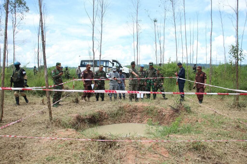 On Saturday Morning, 04 October 2025, the Ministry of National Defence of the Kingdom of Cambodia facilitated the visit of the Interim Observer Team (IOT), led by Malaysia, along with its members, to inspect the actual locations that affected by using Jet fighter to drop MK84 bomb in Thmor Duan village Kork Morn Commune Bonteay Umbil District Oddar Meanchey Province , in order to observe, verify, and report after the ceasefire came