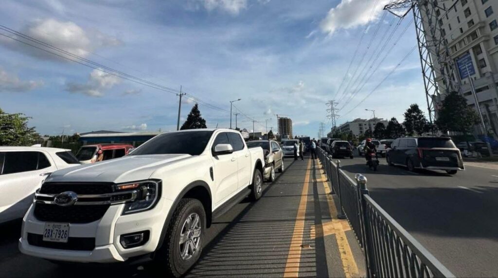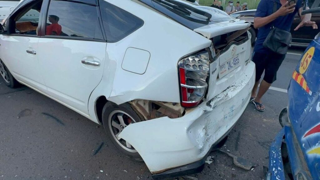 (ភ្នំពេញ)៖ រថយន្ត៦គ្រឿងបានបុកគ្នាជាបន្តបន្ទាប់នៅតាមបណ្តោយផ្លូវ៦០ម៉ែត្រ សង្កាត់ចាក់អង្រែលេី ខណ្ឌមានជ័យ រាជធានីភ្នំពេញ នាវេលាម៉ោង១៥:៣០នាទី រសៀលថ្ងៃទី៩ ខែតុលា ឆ្នាំ២០២៥។