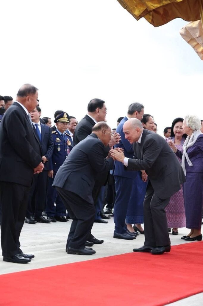 (ភ្នំពេញ)៖ ព្រះករុណា ព្រះបាទ សម្តេចព្រះ បរមនាថ នរោត្តម សីហមុនី ព្រះមហាក្សត្រនៃកម្ពុជា និងព្រះមហាក្សត្រី នរោត្តម មុនិនាថ សីហនុ ព្រះវររាជមាតាជាតិខ្មែរ ជាទីគោរពសក្ការៈដ៏ខ្ពង់ខ្ពស់បំផុត បានយាងនិវត្តន៍មកកាន់មាតុភូមិ ប្រកបដោយសុខសុវត្ថិភាព ក្រោយបញ្ចប់ការពិនិត្យព្រះរាជសុខភាព នៅរដ្ឋធានីប៉េកាំង សាធារណរដ្ឋប្រជាមានិតចិន រយៈពេលជិត២ខែកន្លងមក។