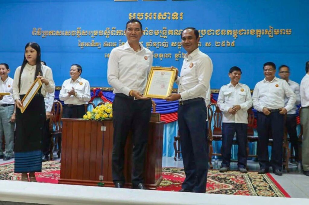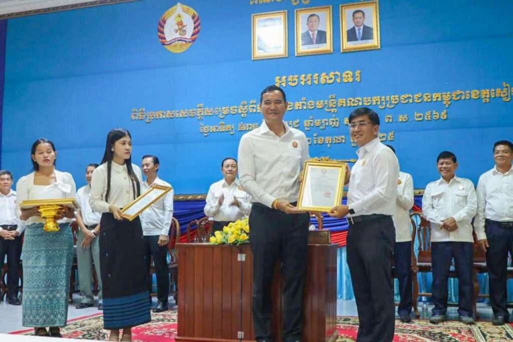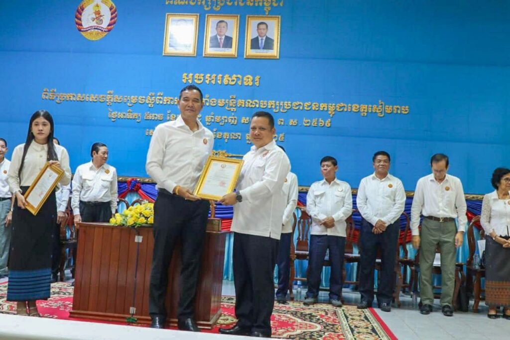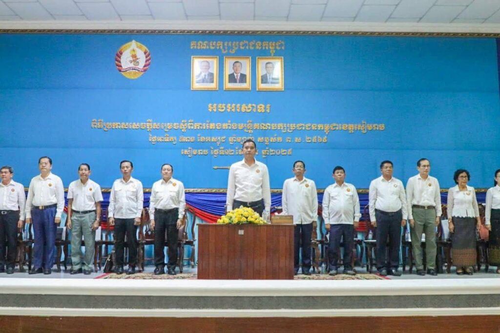 (ខេត្តសៀមរាប)៖ នាព្រឹកថ្ងៃទី១២ ខែតុលា ឆ្នាំ២០២៥ លោក សៀ ទីន អញ្ជើញចូលរួមពិធីប្រកាសសេចក្តីសម្រេចស្តីពី ការតែងតាំងមន្ត្រីគណបក្សប្រជាជនកម្ពុជាខេត្តសៀមរាប ក្រោមអធិបតីភាព ឯកឧត្តម ប្រាក់ សោភ័ណ សមាជិកគណ:កម្មាធិការកណ្តាល គណបក្សប្រជាជនកម្ពុជា និងជាប្រធានគណ:កម្មាធិការ នៃគណបក្សខេត្តសៀមរាប ដែលប្រារព្ធធ្វើនៅសាលប្រជុំគណបក្សប្រជាជនខេត្តសៀមរាប។