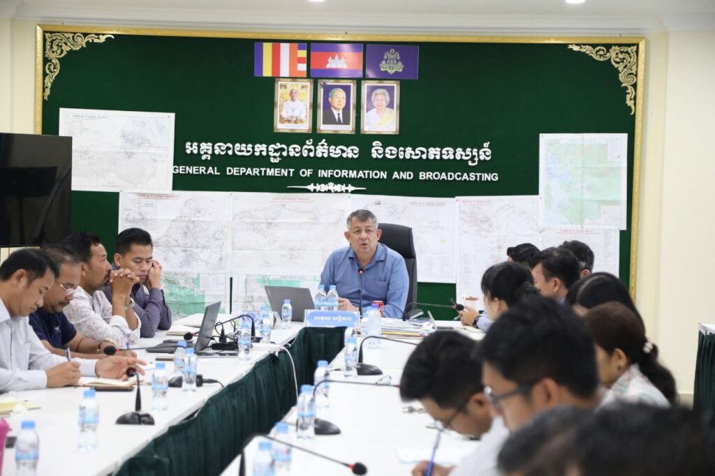 ឯកឧត្តម ផុស សុវណ្ណ អគ្គនាយក នៃអគ្គនាយកដ្ឋានព័ត៌មាន និងសោតទស្សន៍ អញ្ជើញដឹកនាំកិច្ចប្រជុំពិនិត្យវឌ្ឍនភាពការងារ ប្រចាំសប្តាហ៍ របស់អគ្គនាយកដ្ឋានព័ត៌មាន និងសោតទស្សន៍ នាព្រឹកថ្ងៃទី១៣ ខែតុលា ឆ្នាំ២០២៥ ក្រសួងព័ត៌មាន។