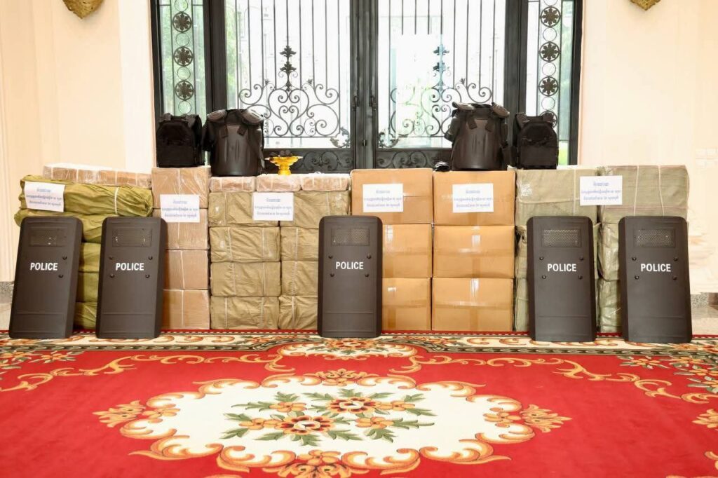 សូមជម្រាបជូនថា សម្ភារដែលបានប្រគល់ជូន អគ្គនាយកដ្ឋានពន្ធនាគារ រួមមាន៖ អាវការពារ (អាវក្រោះ) ចំនួន ២៥០អាវ, ខ្នោះដៃ ចំនួន ៦០០ឈុត, ដំបងរលាស់ ចំនួន ៥០០ដើម, ខែលការពារ ចំនួន ២៥០ឈុត, ចង្កៀងបំពាក់លើស្មា ចំនួន ៥០០គូ និងឈុតការពារបាតុកម្ម ចំនួន ១៥០ឈុត។ ចំណែកអគ្គាធិការដ្ឋាន ទទួលបានរថយន្ត ១៥កៅអី ចំនួន ១គ្រឿង៕