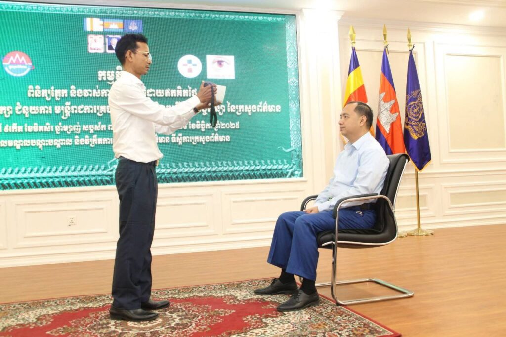 - ឯកឧត្តម នេត្រ ភក្រ្តា រដ្ឋមន្ត្រីក្រសួងព័ត៌មាន អញ្ជើញជាអធិបតីកម្មវិធីពិនិត្យភ្នែក និងវាស់កាត់វ៉ែនតា ជាប្រភេទវ៉ែនតាការពារកុំព្យូទ័រ វ៉ែនតាមីញ៉ូប និងវ៉ែនតាសម្រាប់អានអក្សរ ជូនដល់ថ្នាក់ដឹកនាំ និងមន្ត្រីរាជការក្រសួងព័ត៌មានគ្រប់លំដាប់ថ្នាក់ ដោយឥតគិតថ្លៃ នាព្រឹកថ្ងៃទី២៩ ខែវិច្ឆិកា ឆ្នាំ២០២៥ នៅសាលមណ្ឌលបណ្តុះបណ្តាល និងវិក្រឹតការវិជ្ជាជីវៈសារព័ត៌មាន ទីស្តីការក្រសួងព័ត៌មាន ដោយសហការជាមួយក្រុមគ្រូពេទ្យភ្នែក គៀនឃ្លាំង។