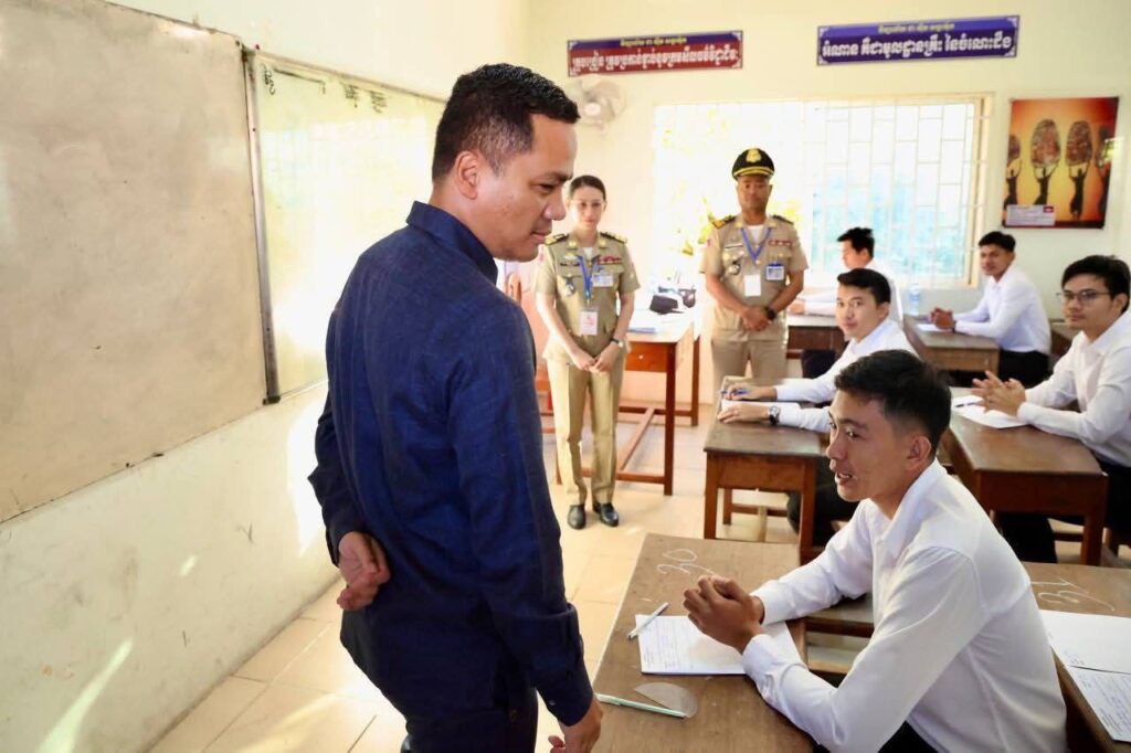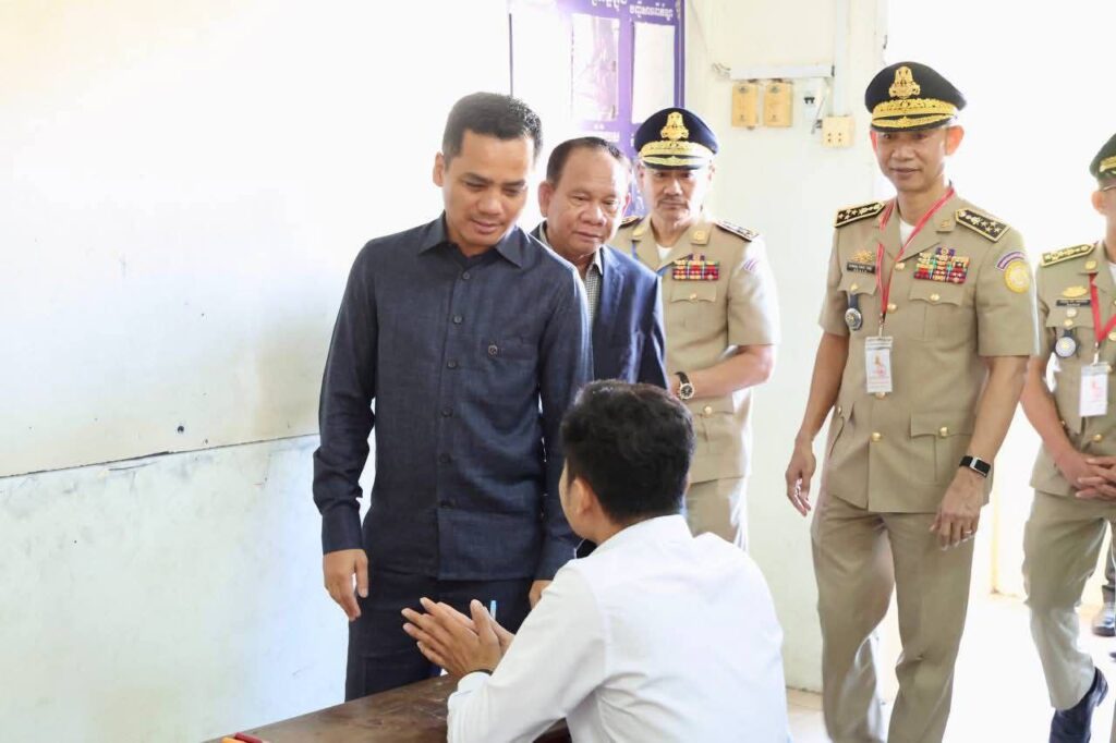 (ភ្នំពេញ)៖ នៅព្រឹកថ្ងៃទី៣០ ខែវិច្ឆិកា ឆ្នាំ២០២៥ ឯកឧត្តមអភិសន្តិបណ្ឌិត ស សុខា ឧបនាយករដ្ឋមន្ត្រី រដ្ឋមន្ត្រីក្រសួងមហាផ្ទៃ និងជាប្រធានគណៈកម្មការរៀបចំការប្រឡងប្រជែងជ្រើសរើសក្របខ័ណ្ឌមន្ត្រីនគរបាលជាតិ បានអញ្ជើញបើកវិញ្ញាសាប្រឡងប្រជែងជ្រើសរើសក្របខ័ណ្ឌមន្ត្រីនគរបាលជាតិឆ្នាំ២០២៥ ឱ្យចូលបម្រើការងារនៅស្នងការដ្ឋាននគរបាលរាជធានីភ្នំពេញ និងអគ្គនាយកដ្ឋាន នាយកដ្ឋាន អង្គភាព ចំណុះក្រសួងមហាផ្ទៃ នៅមណ្ឌលប្រឡង វិទ្យាល័យ ជា ស៊ីម សន្ធរម៉ុក រាជធានីភ្នំពេញ៕