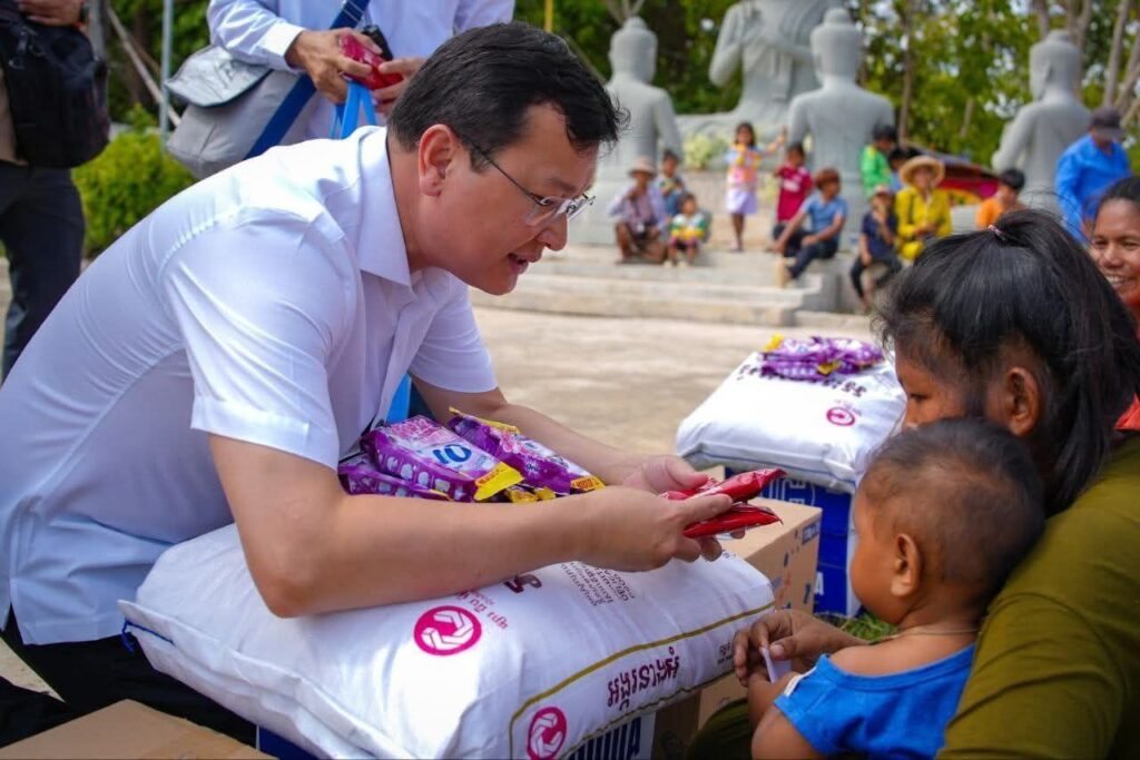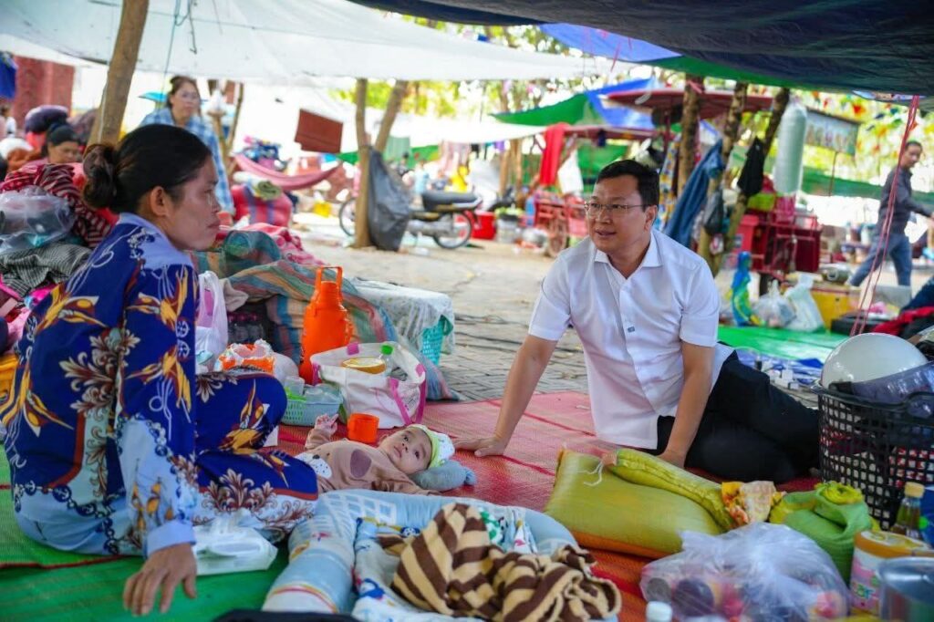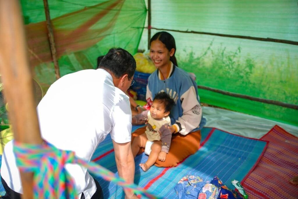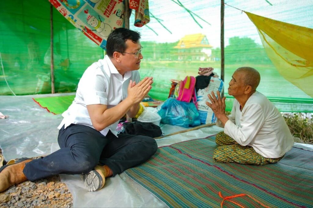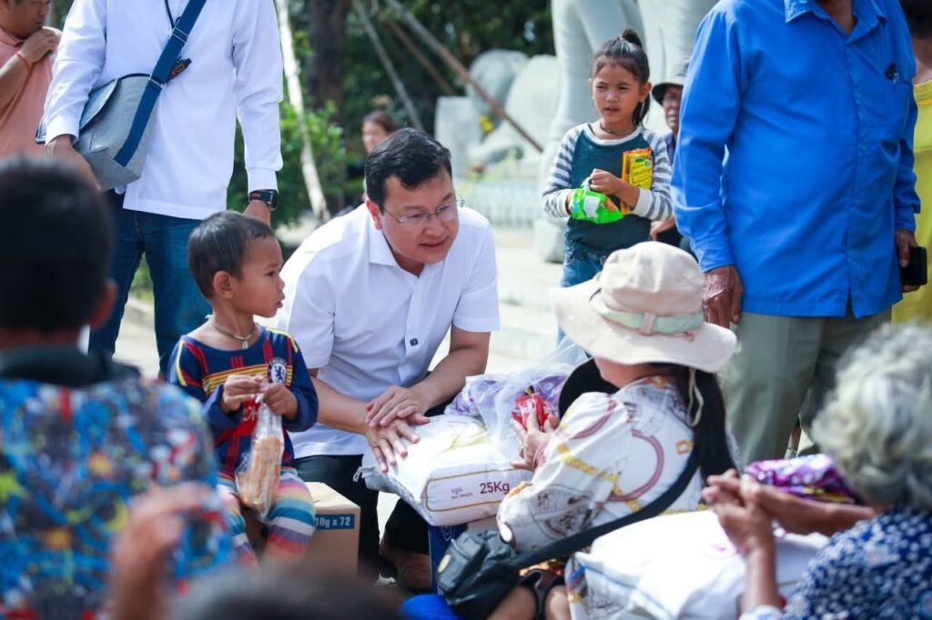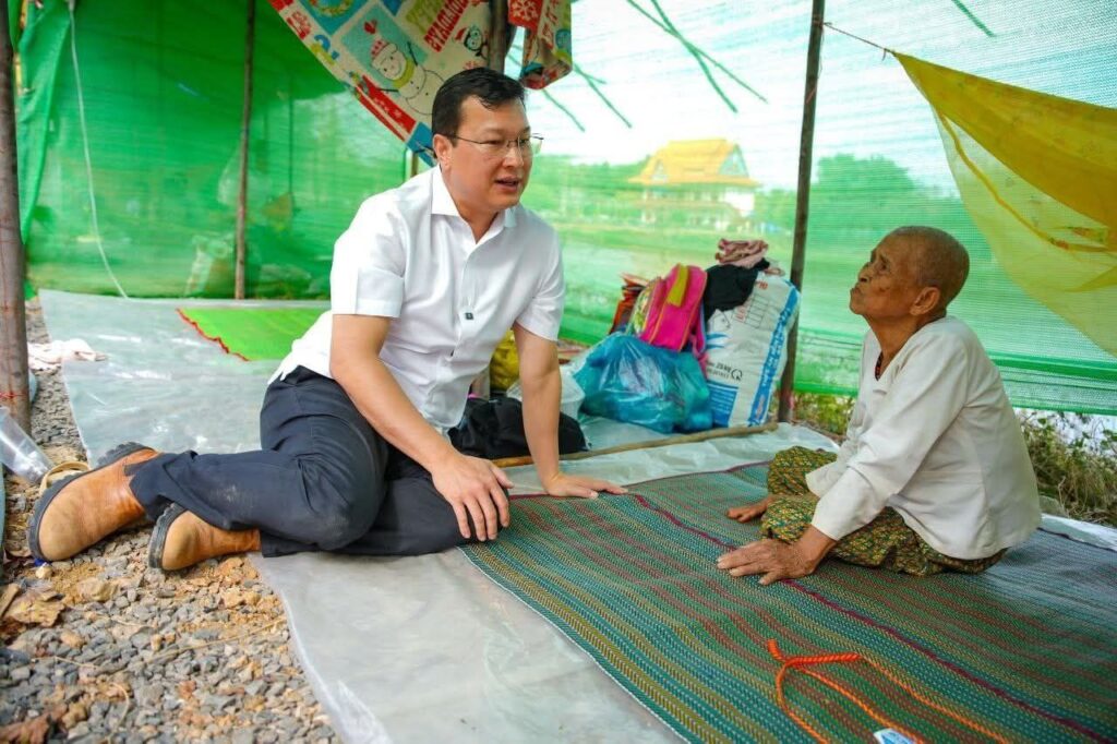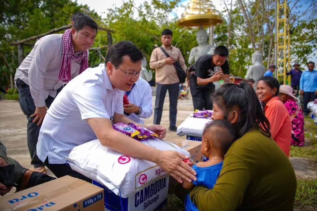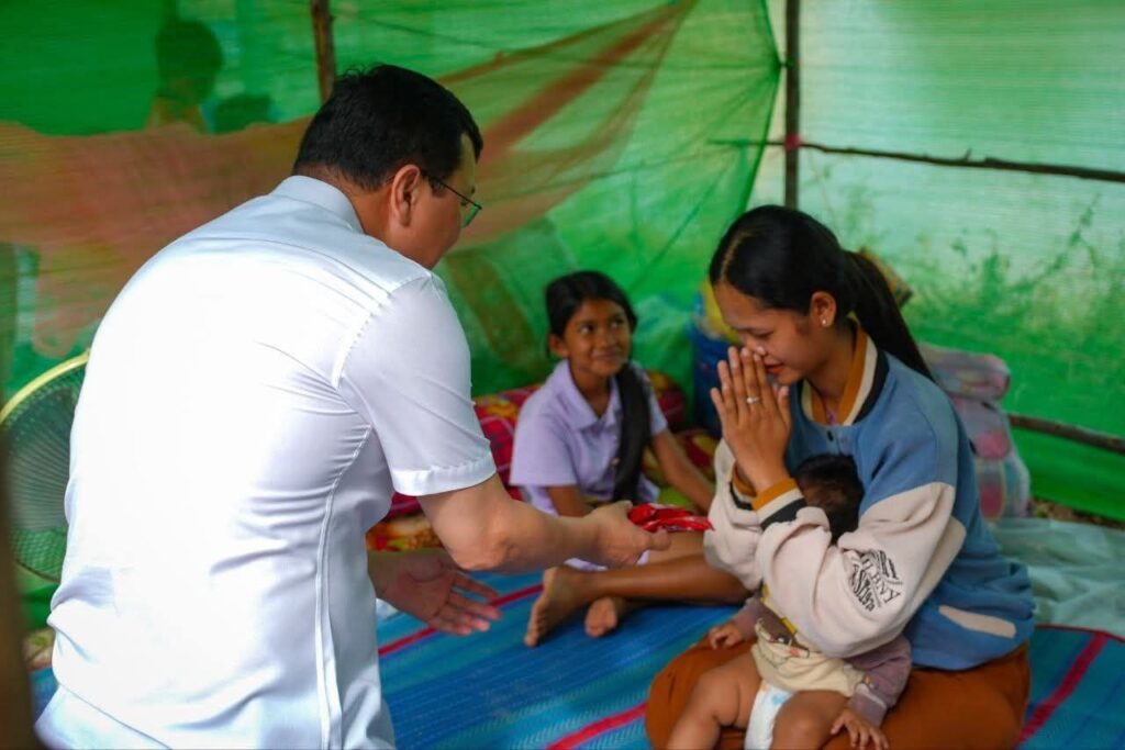 (ខេត្តបន្ទាយនានជ័យ)៖ នារសៀលថ្ងៃទី១៤ ខែធ្នូ ឆ្នាំ២០២៥ ឯកឧត្តម ឌិត ទីណា រដ្ឋមន្រ្តីក្រសួងកសិកម្ម រុក្ខាប្រមាញ់ និងនេសាទ និងអ្នកឧកញ៉ា លាង ឃុន សហស្ថាបនិកក្រុមហ៊ុន ជីប ម៉ុង ព្រមទាំងក្រុមការងាររាជរដ្ឋាភិបាលចុះមូលដ្ឋានខេត្តបន្ទាយមានជ័យ បានសួរសុខទុក្ខ និងនាំយកអង្ករ ទឹកសុទ្ធ និងសាប៊ូ ជូនពុកម៉ែបងប្អូនជនភៀសសឹកមកមណ្ឌលសុវត្ថិភាព នៅក្រុងសិរីសោភ័ណ្ឌ ខេត្តបន្ទាយមានជ័យ។