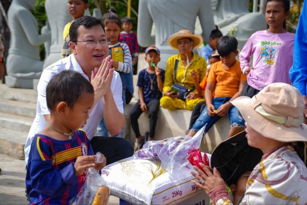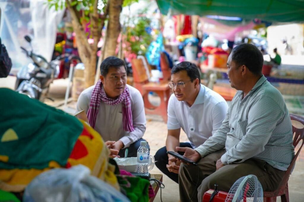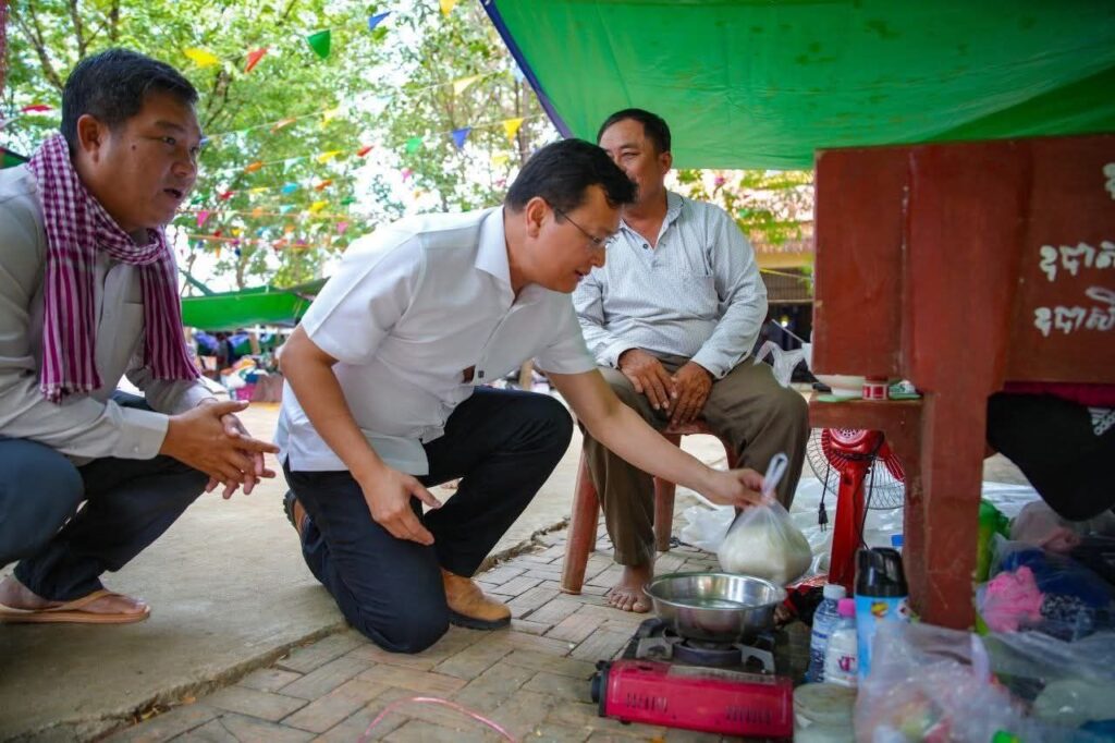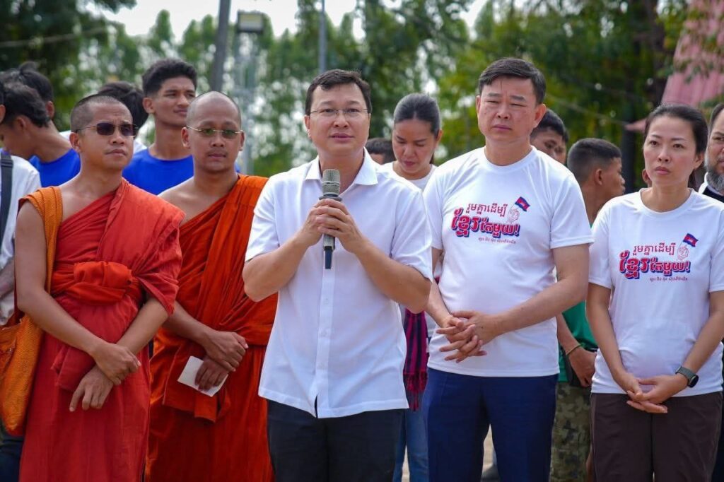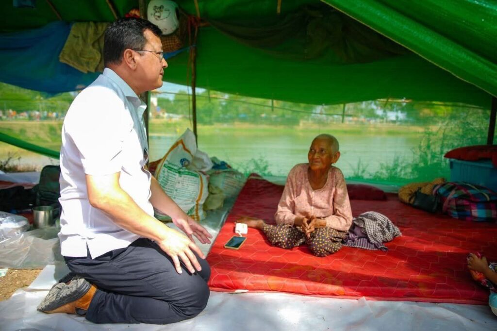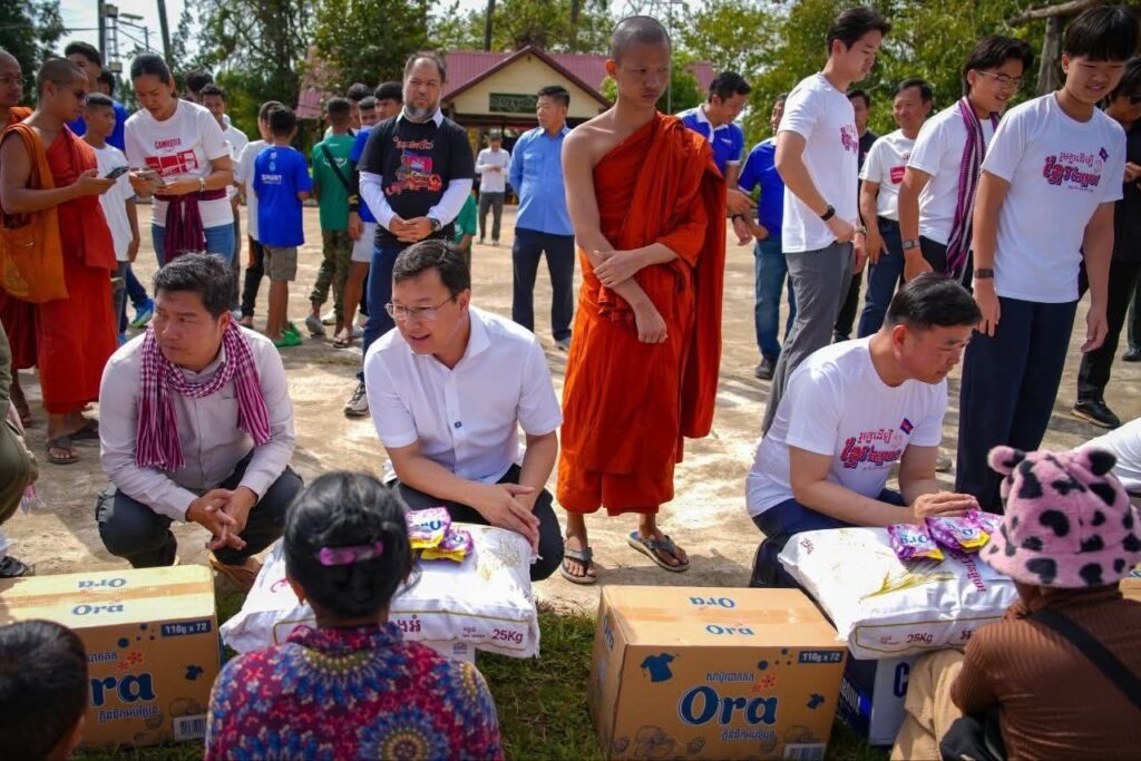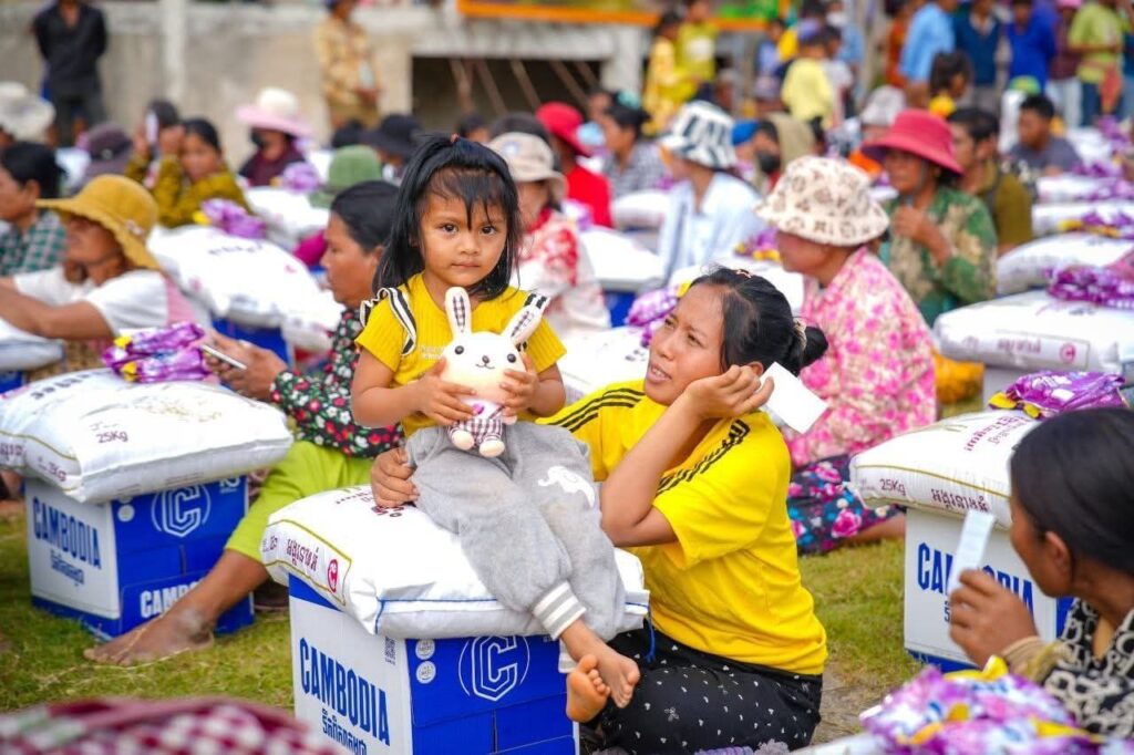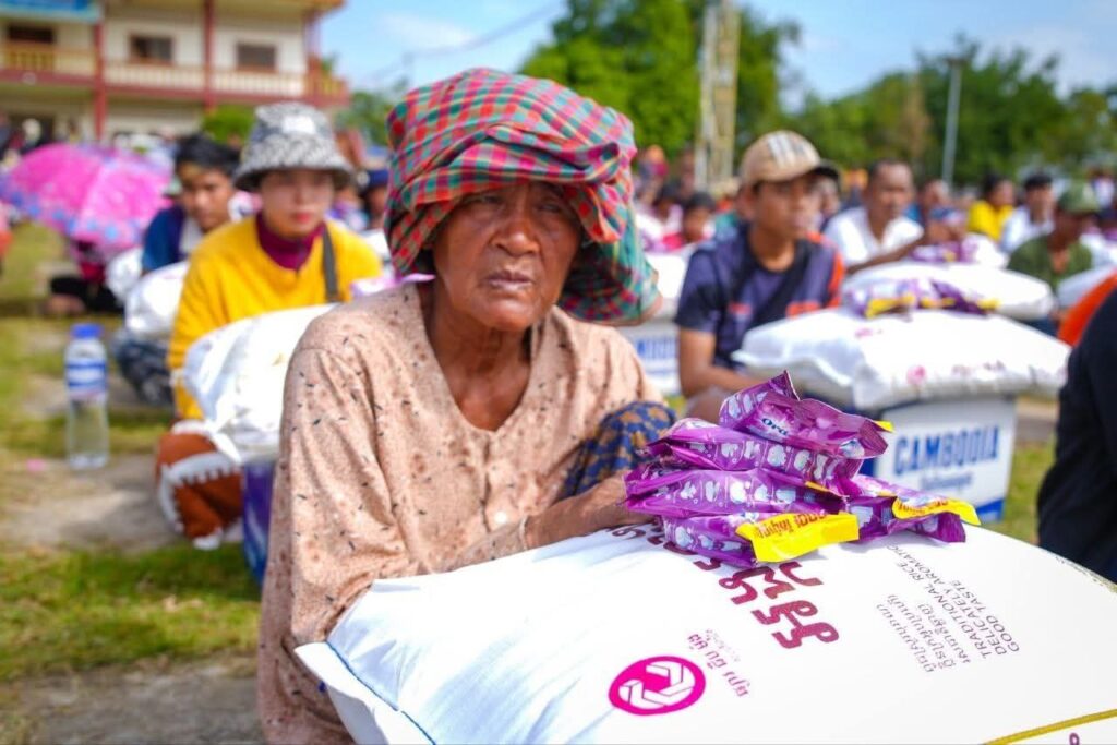 (ខេត្តបន្ទាយនានជ័យ)៖ នារសៀលថ្ងៃទី១៤ ខែធ្នូ ឆ្នាំ២០២៥ ឯកឧត្តម ឌិត ទីណា រដ្ឋមន្រ្តីក្រសួងកសិកម្ម រុក្ខាប្រមាញ់ និងនេសាទ និងអ្នកឧកញ៉ា លាង ឃុន សហស្ថាបនិកក្រុមហ៊ុន ជីប ម៉ុង ព្រមទាំងក្រុមការងាររាជរដ្ឋាភិបាលចុះមូលដ្ឋានខេត្តបន្ទាយមានជ័យ បានសួរសុខទុក្ខ និងនាំយកអង្ករ ទឹកសុទ្ធ និងសាប៊ូ ជូនពុកម៉ែបងប្អូនជនភៀសសឹកមកមណ្ឌលសុវត្ថិភាព នៅក្រុងសិរីសោភ័ណ្ឌ ខេត្តបន្ទាយមានជ័យ។