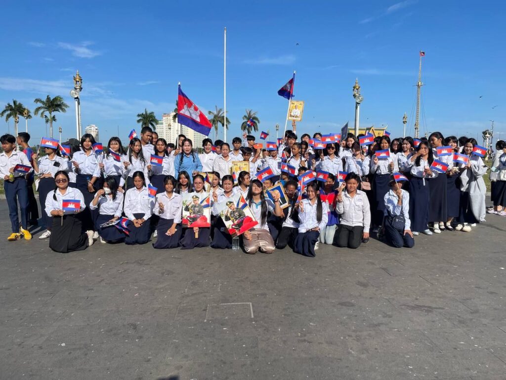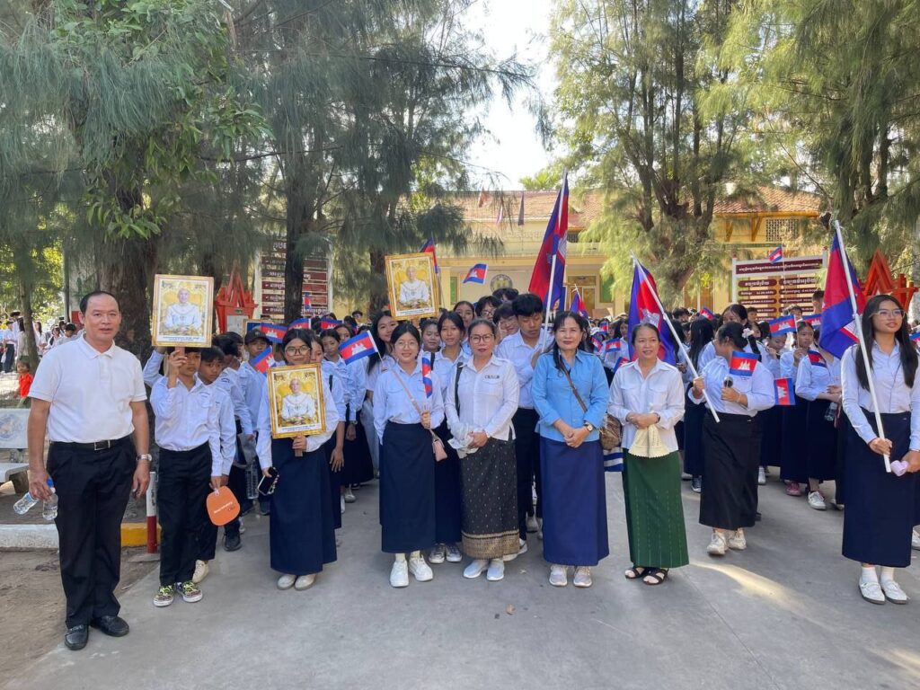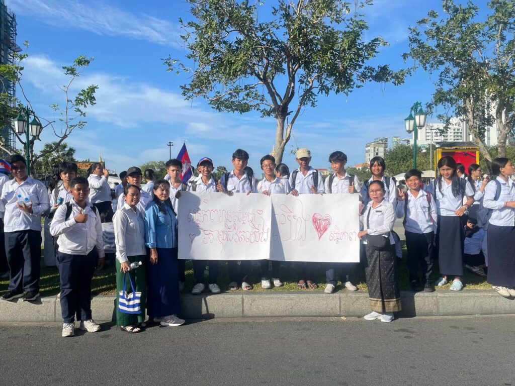 បុគ្គលិកសិក្សានៃវិទ្យាល័យព្រះស៊ីសុវត្ថិ និងសិស្សានុសិស្ស ក្នុងកម្មវិធីដើរដើម្បីសន្តិភាព (March for Peace) ពីបរិវេណផ្សាររាត្រី ធ្វើដំណើរដោយថ្មើរជើងឆ្ពោះទៅសួនច្បារវិមានឯករាជ្យ ថ្ងៃទី១៨ ខែធ្នូ ឆ្នាំ២០២៥