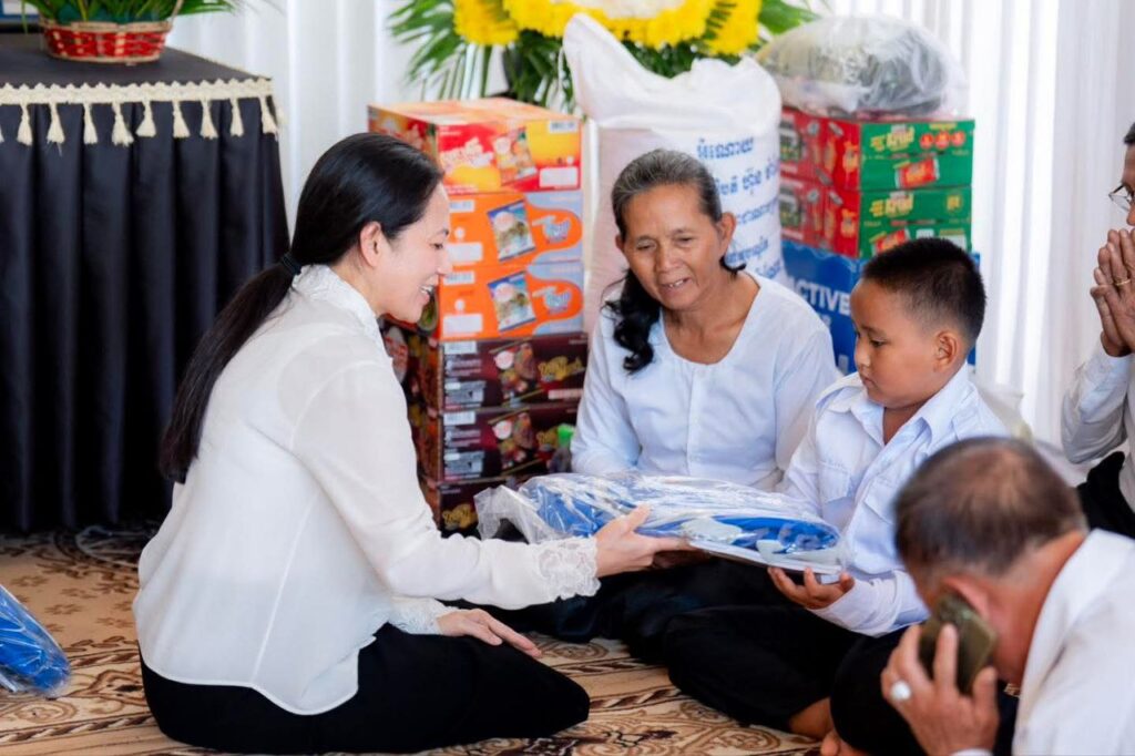 ក្នុងវេលានេះដែរ លោកជំទាវបណ្ឌិត បានពាំនាំប្រសាសន៍ចូលរួមរំលែកមរណទុក្ខដ៏ក្រៀមក្រំបំផុត រួមជាមួយប្រសាសន៍សួរសុខទុក្ខពី សម្តេចអគ្គមហាសេនាបតីតេជោ ហ៊ុន សែន សម្តេចកិត្តិព្រឹទ្ធបណ្ឌិត ប៊ុន រ៉ានី ហ៊ុនសែន រួមទាំង សម្តេចមហាបវរធិបតី ហ៊ុន ម៉ាណែត ជូនដល់ក្រុមគ្រួសារនៃសពផងដែរ។ ទន្ទឹមនឹងនេះ លោកជំទាវបណ្ឌិត ក៏បាននាំយកមកជាមួយនូវអំណោយដ៏ថ្លៃថ្លារបស់ សម្តេចធិបតី និងលោកជំទាវបណ្ឌិត មានដូចជាថវិកា សម្ភារៈប្រើប្រាស់ ស្បៀងអាហារ និងសម្ភារៈចាំបាច់ផ្សេងៗ ជូនដល់ក្រុមគ្រួសារនៃសព ដើម្បីជួយទ្រទ្រង់ជីវិតរស់នៅប្រចាំថ្ងៃ។