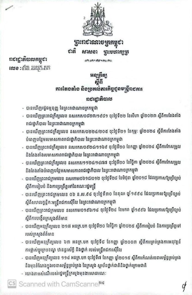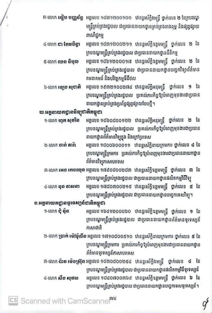 មន្ត្រីនៃក្រសួងព័ត៌មាន ២៨រូប ទទួលបានសេចក្តីទុកចិត្តពីប្រមុខរាជរដ្ឋាភិបាល ឱ្យកាន់តួនាទីផ្សេងៗ ដើម្បីពង្រឹងប្រសិទ្ធភាព និងគុណភាពលើកិច្ចការព័ត៌មាន។