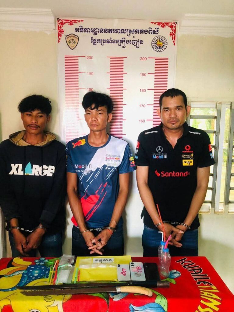 (ខេត្តកំពង់ស្ពឺ)៖ ដោយអនុវត្តតាមការណែនាំពីលោកឧត្តមសេនីយ៍ទោ ឃឹម សុកខៃ ស្នងការនគរបាលខេត្ដកំពង់ស្ពឺ និងដឹកនាំដោយលោកវរសេនីយ៍ឯក យ៉ាង សុខលី អធិការនគរបាលស្រុកគងពិសី មុខសញ្ញាពាក់ព័ន្ធនឹងគ្រឿងញៀន ៣នាក់ត្រូវបានឃាត់ខ្លួន និងដកហូតម្សៅក្រាមពណ៌សថ្លាសង្ស័យជាគ្រឿងញៀន ៤កញ្ចប់ (តូច១.មធ្យម៣) ទូរស័ព្ទដៃ ៣គ្រឿង ដាវ ២ដើម ឧបករណ៍ប្រើប្រាស់មួយចំនួន។
