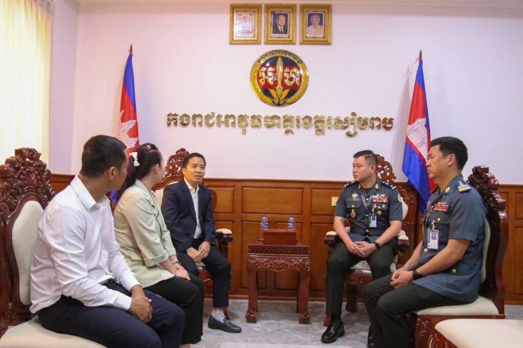 (ខេត្តសៀមរាប)៖ នារសៀលថ្ងៃចន្ទ ទី៦ ខែមេសា ឆ្នាំ២០២៦ នៅបញ្ជាការដ្ឋាន កងរាជអាវុធហត្ថខេត្ត លោកឧត្តមសេនីយ៍ត្រី សៀ ទីន មេបញ្ជាការ កងរាជអាវុធហត្ថខេត្តសៀមរាប ទទួលស្វាគមន៍ Mr Giap Hong Hoan នាយកសាខាក្រុមហ៊ុនមិត្តហ្វូន ប្រចាំខេត្តសៀមរាប និងក្រុមការងារ អញ្ជើញជួបសំណេះសំណាលសម្តែងការគួរសម ពិភាក្សាការងារ និងជូនពរ នាឱកាសពិធីបុណ្យចូលឆ្នាំថ្មីប្រពៃណីជាតិខ្មែរ ឆ្នាំមមី អដ្ឋស័ក ព.ស ២៥៧០ គ.ស ២០២៦ ដែលនឹងឈានមកដល់នាពេលខាងមុខនេះ។