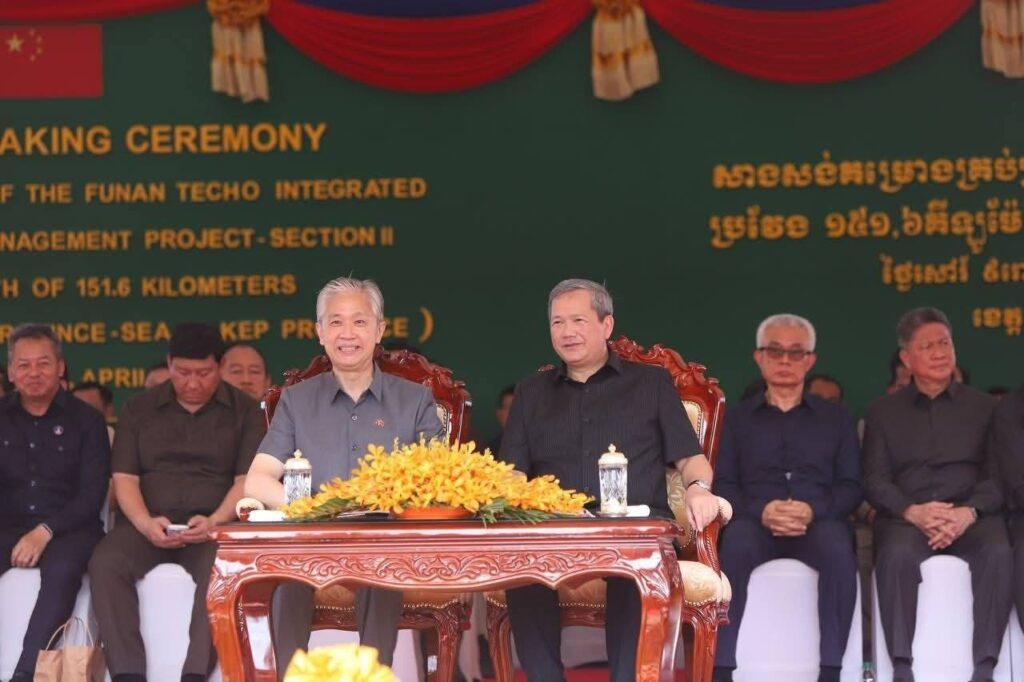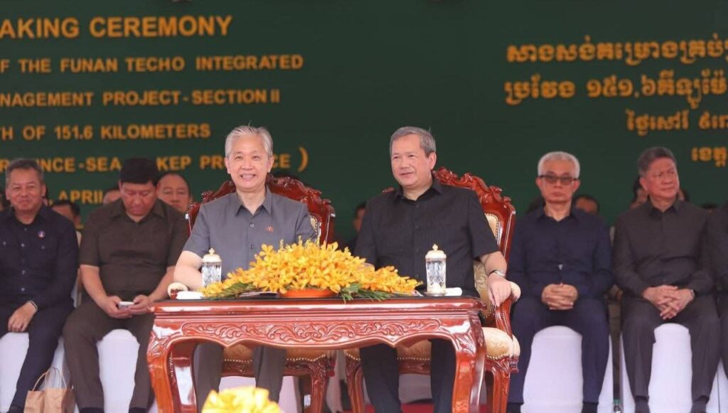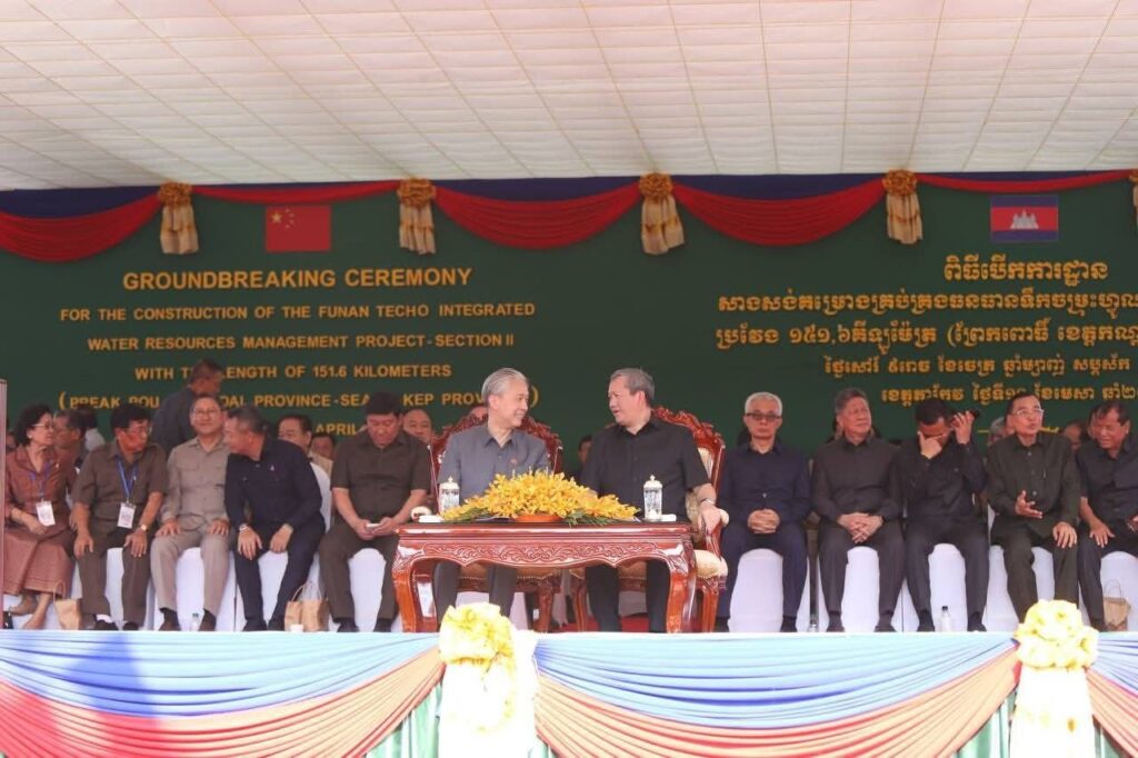 (ខេត្តតាកែវ)៖ សម្តេចមហាបវរធិបតី ហ៊ុន ម៉ាណែត នាយករដ្ឋមន្ត្រី នៃព្រះរាជាណាចក្រកម្ពុជា អញ្ជើញជាអធិបតីបើកការដ្ឋានសាងសង់គម្រោងគ្រប់គ្រងធនធានទឹកចម្រុះហ្វូណនតេជោ កំណាត់ទី២ ប្រវែង ១៥១,៦គីឡូម៉ែត្រ (ព្រែកពោធិ៍ ខេត្តកណ្តាល – សមុទ្រ ខេត្តកែប) នៅព្រឹកថ្ងៃសៅរ៍ ទី១១ ខែមេសា ឆ្នាំ២០២៦។