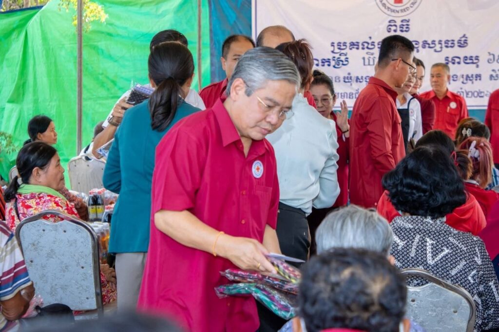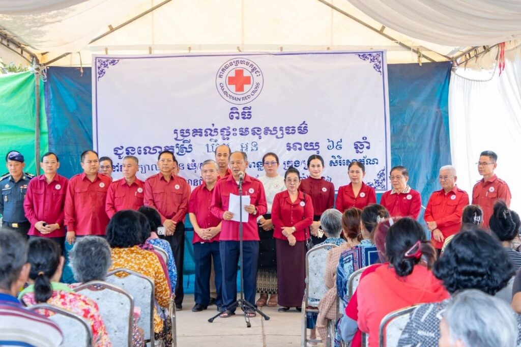 (ខេត្តបន្ទាយមានជ័យ)៖ ឯកឧត្តម អ៊ុំ រាត្រី អភិបាល នៃគណៈអភិបាលខេត្តបន្ទាយមានជ័យ និងជាប្រធានគណៈកម្មាធិការសាខាកាកបាទក្រហមកម្ពុជាខេត្ត និងលោកជំទាវ នួម សុភ័ណ អនុប្រធានកិត្តិយសសាខាកាកបាទក្រហមកម្ពុជាខេត្ត អមដំណើរដោយក្រុមការងារសាខាកាកបាទក្រហមខេត្ត អនុសាខាកាកបាទក្រហមក្រុងសិរីសោភ័ណ សង្កាត់ បានអញ្ជើញចូលរួមប្រគល់ផ្ទះមួយខ្នងជូនដល់អុំស្រី ឃឹម អូន ភេទស្រី អាយុ៦៩ឆ្នាំ មានជីវភាពខ្វះខាត នៅភូមិក្បាលស្ពាន សង្កាត់ព្រះពន្លា ក្រុងសិរីសោភ័ណ ខេត្តបន្ទាយមានជ័យ នៅរសៀលថ្ងៃទី១០ ខែមេសា ឆ្នាំ២០២៦។
